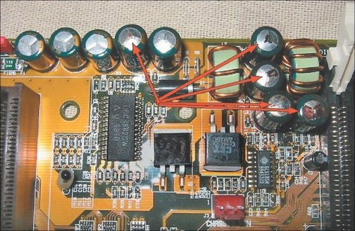 Em geral, os capacitores que dilatam são os que trabalham com mais corrente: os da região que alimenta o processador. A questão é que muitas vezes a culpada pelos “capacitores estufados” não é a placa, e sim a fonte, afinal é ela que os alimenta.