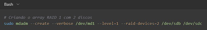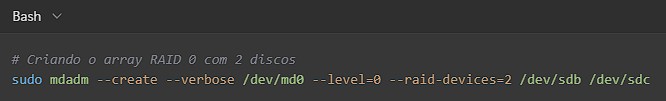 Aviso Amigável: Certifique-se de que os discos estão vazios, pois os comandos abaixo apagarão todos os dados neles!