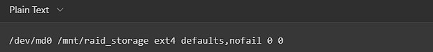 Criar o RAID é apenas o primeiro passo. Precisamos garantir que ele seja montado automaticamente após um reboot.