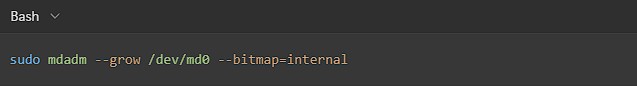 - Adicionar o novo disco:sudo mdadm /dev/md1 –add /dev/sde