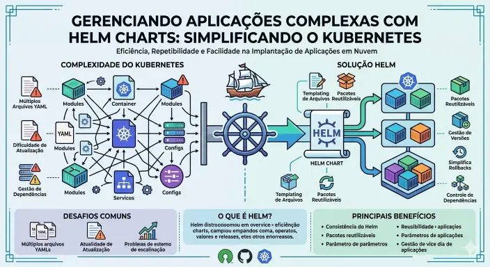 Sem o Helm, a gestão de aplicações no Kubernetes pode se tornar um pesadelo. Você precisaria:
