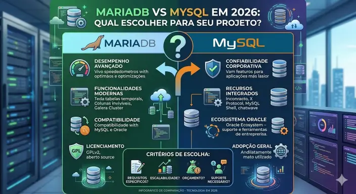 A decisão entre MariaDB e MySQL em 2026 depende muito das suas prioridades e do contexto do seu projeto.