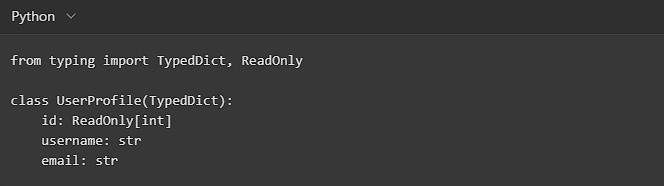 Uma das adições mais solicitadas foi a capacidade de marcar campos em um TypedDict como somente leitura. Isso é vital para APIs que retornam dados que não devem ser modificados pelo cliente.